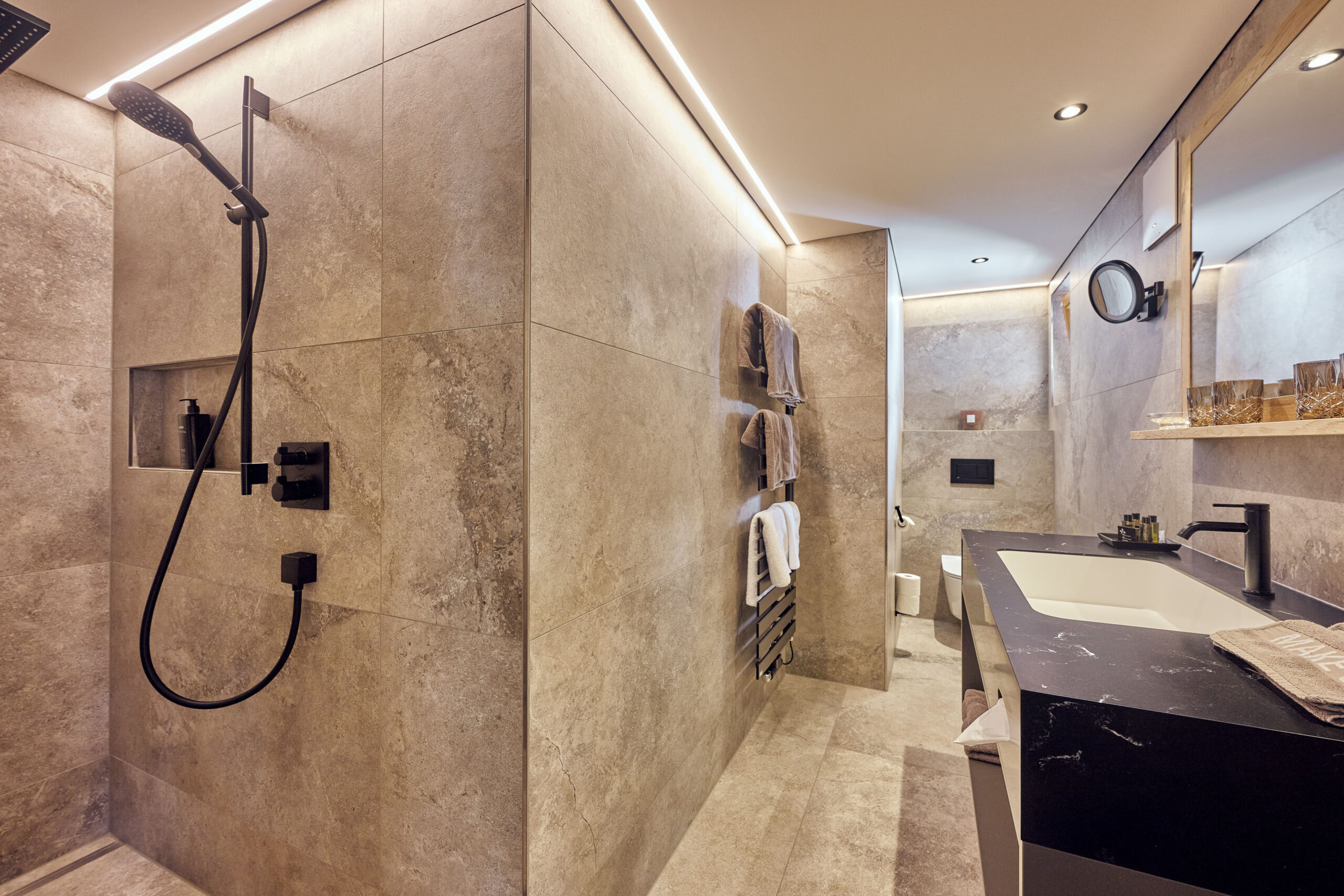 - Kitchen: bar counter with bar stool, retractable TV, 4-ring hob, ceramic hob, microwave with grill function, dishwasher, toaster, kettle, soda streamer and Nespresso machine