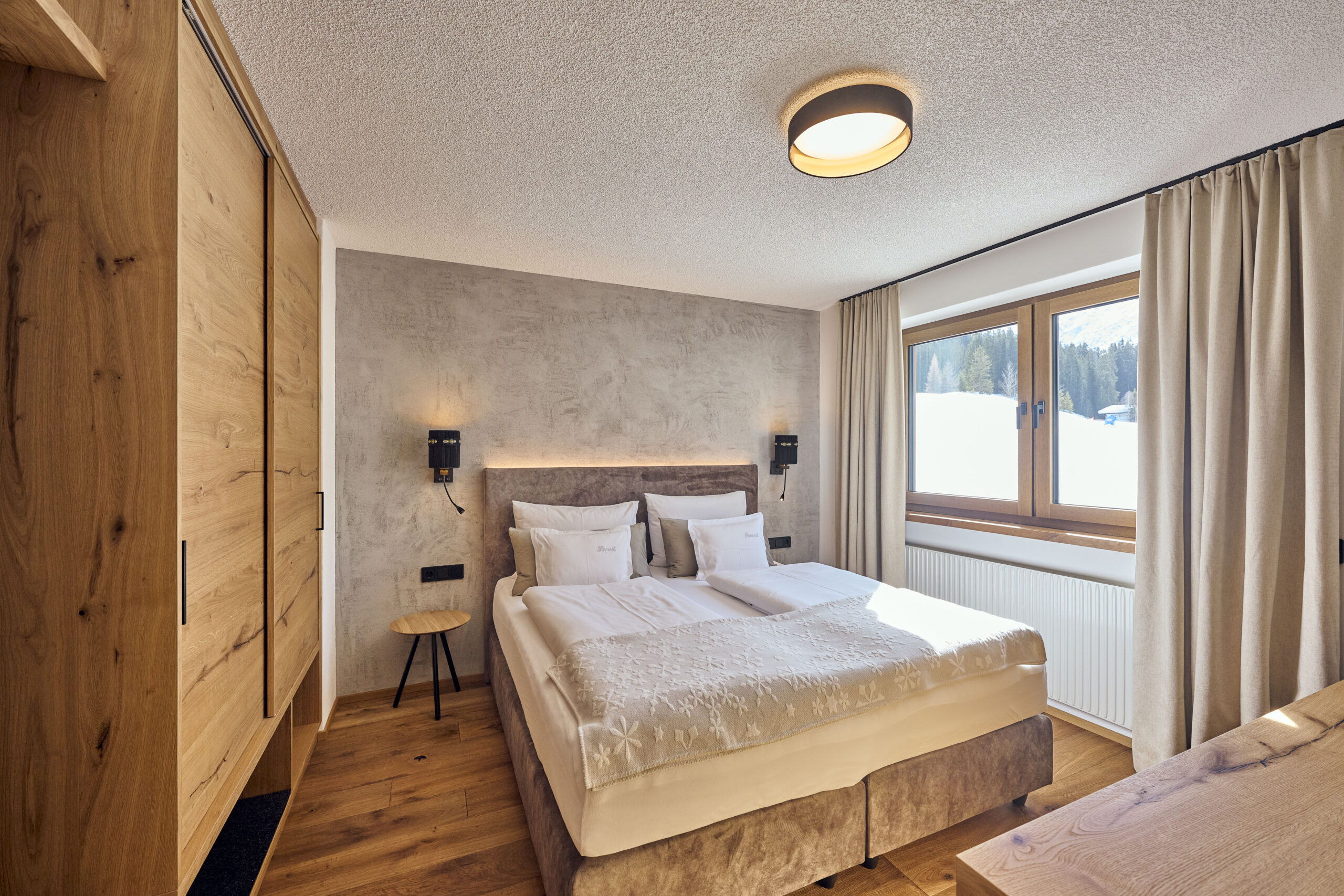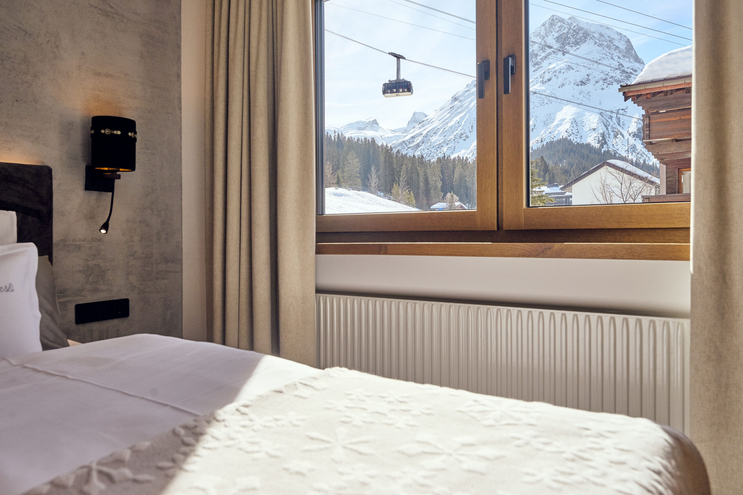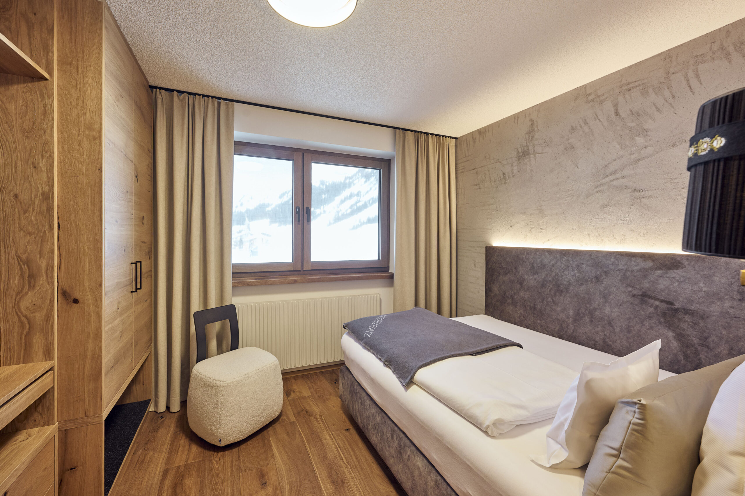 - The rooms, with views of the forest and mountains, are bright and some have wooden floorboards.